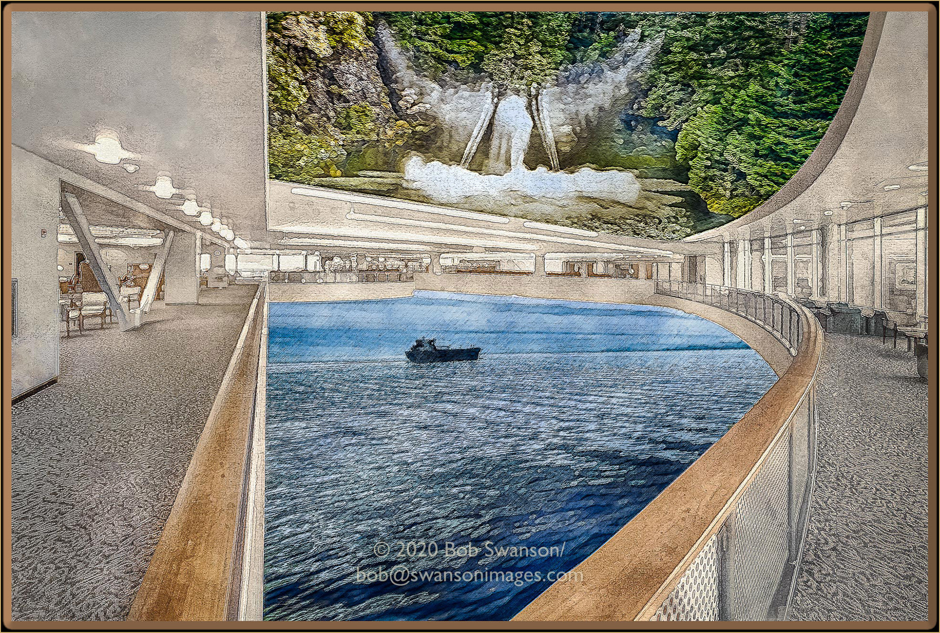 The Library of Ocean Angels On the balcony above the great waters, the angels watching down, the ship of Fate works its way along as I ponder where to find the answers to the only questions we can have.