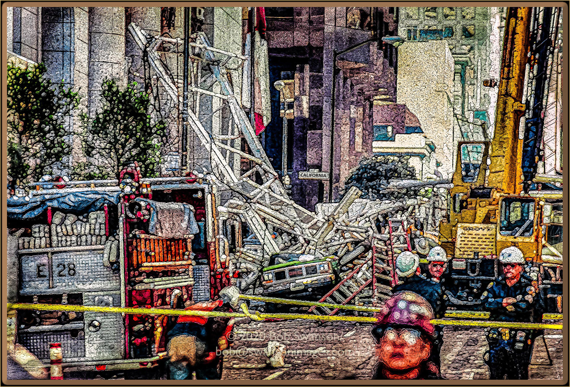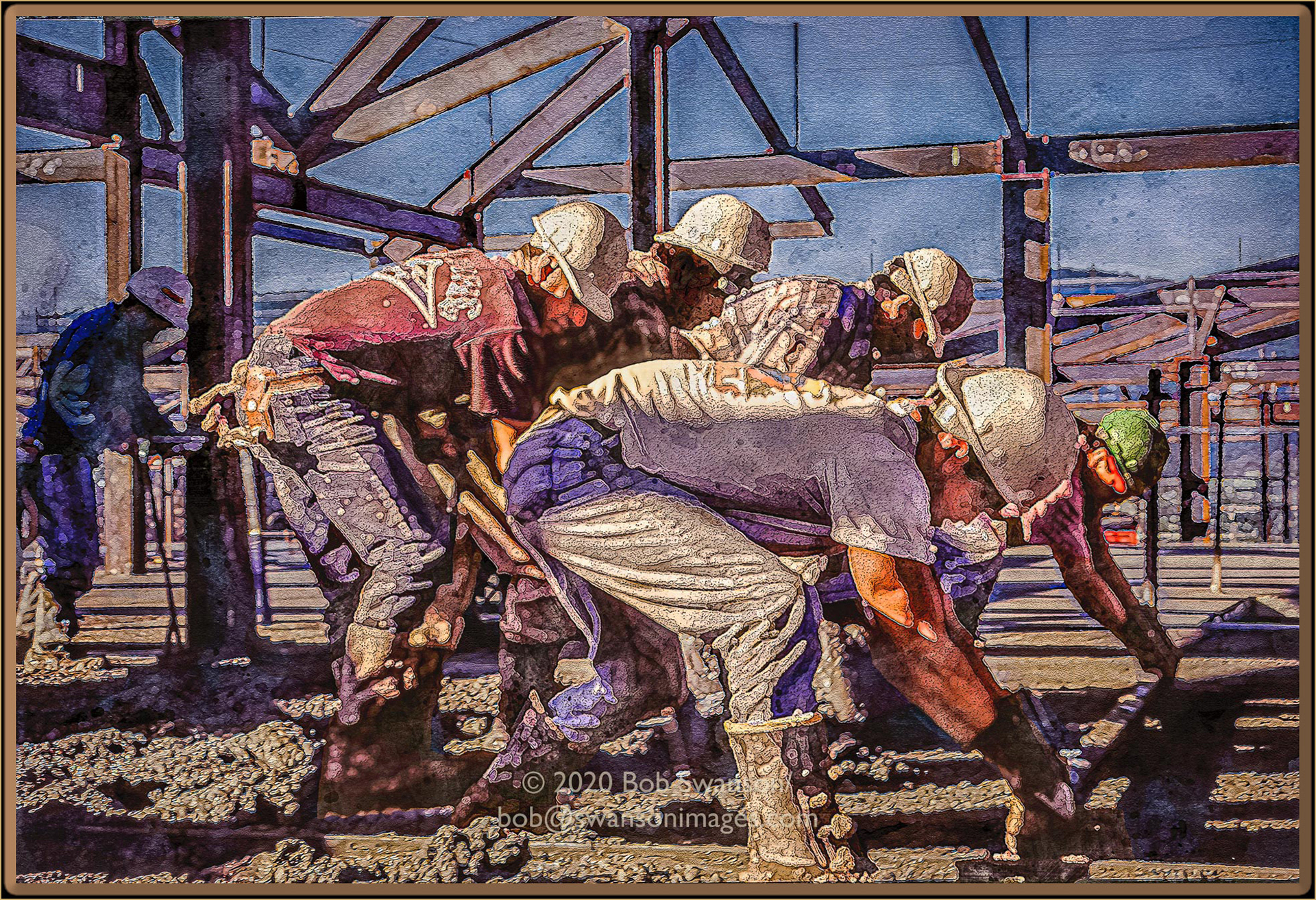 Teamwork #1 Pulling hard to make it smooth, the gang is together in their desire to get it done right. Covered in hardening muck and breathing the dust, undaunted, we just walk on their work.