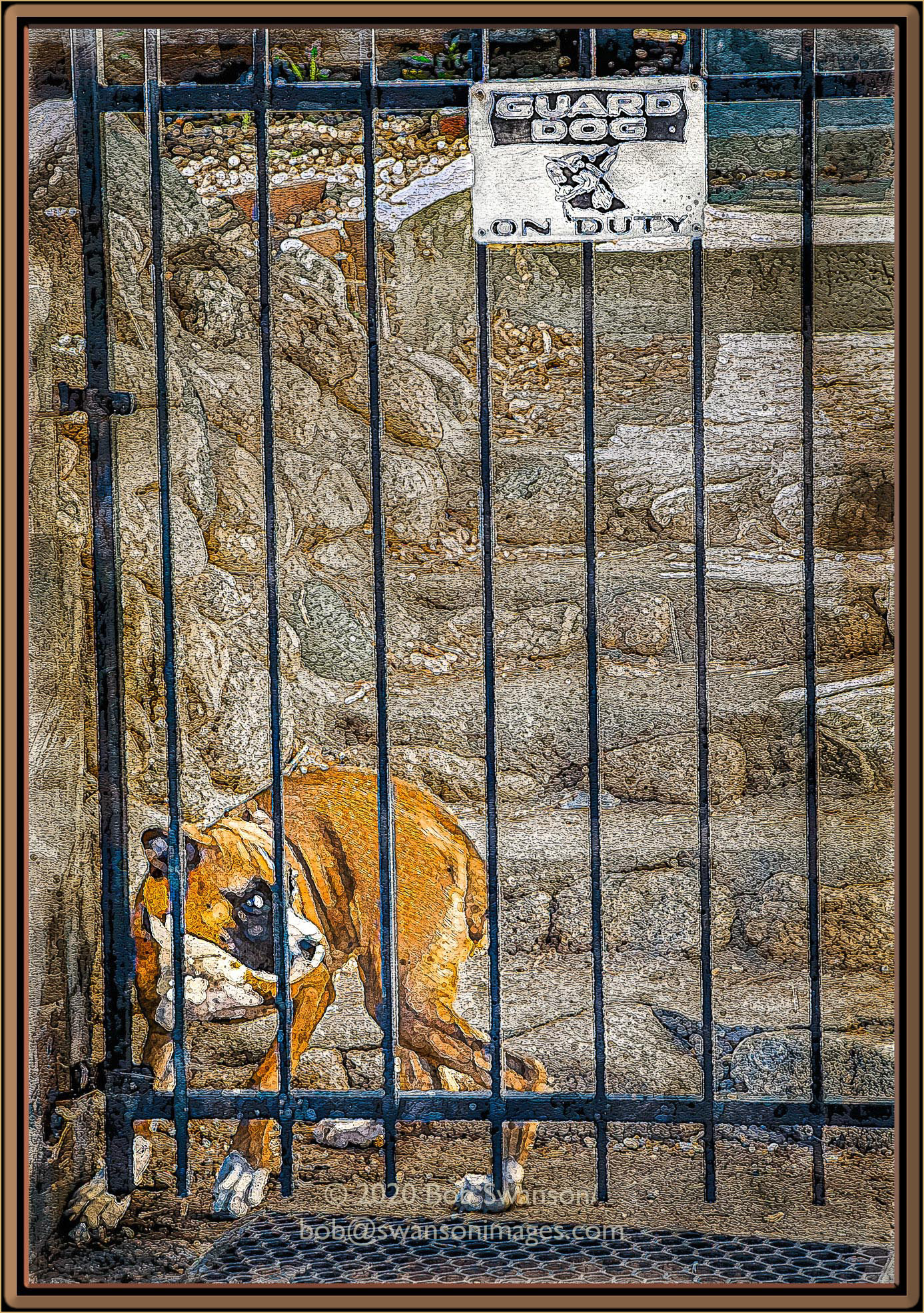 Beware of Dawg Territorial, defending his turf, The killer dawg, snarls, barks and growls a warning that if you get closer, you will be honor bound to stroke his silky fur. After consuming the obligatory treat.